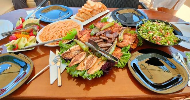 Siz dinlenirken, mürettebat lezzetli bir açık büfe öğle yemeği hazırlar, ızgara tavuk, taze balık, köfte, makarna, salata, ekmek ve mevsim meyveleri dahil, sınırsız alkolsüz içecekler 🥤 eşliğinde. Öğle yemeğinden sonra, misafirler manzaralı bir nehir gezisi ve açık sularda heyecan verici Yunus Kovalamacasının keyfini çıkarabilirler. Yolculuk, Sorgun Antik Kenti yakınlarındaki Kleopatra Plajı'na son bir yüzme için devam eder, ardından limana geri dönülür, burada özel transferiniz sizi bekler.