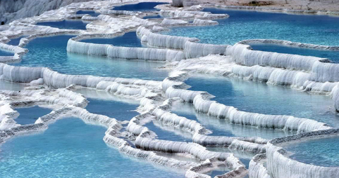 • Ünlü beyaz traverten teraslarını hayranlıkla izleyin.