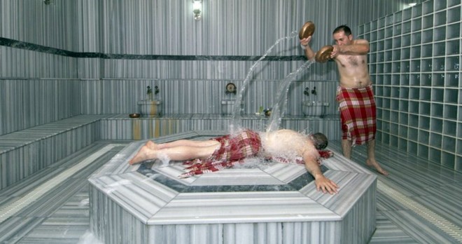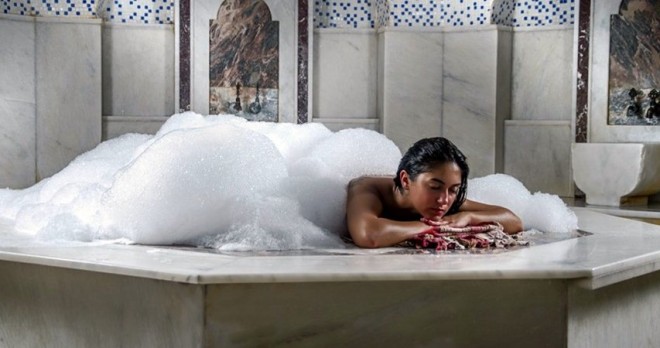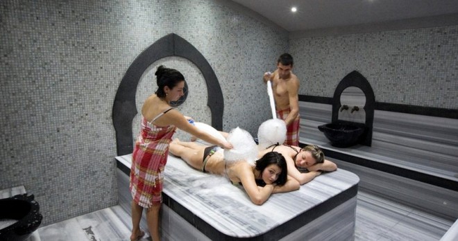 🛁 Otantik Hamam Ritüeli – Geleneksel kese, köpük masajı ve aromatik yağ terapisi ısıtılmış mermer taşlar üzerinde