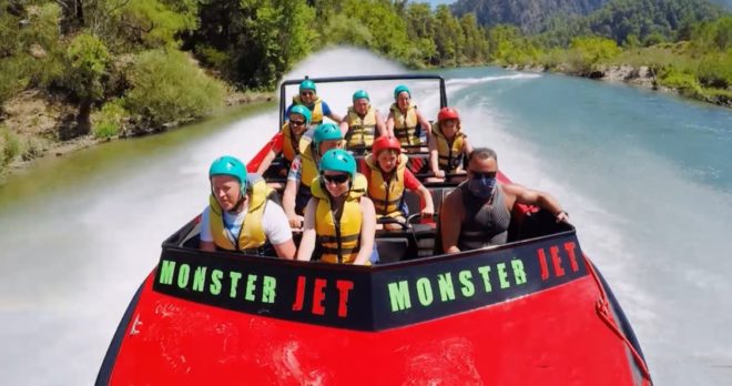 Manavgat'ta nihai macera günü için hazır olun! Canavar Macera Turu, kalp atışlarını hızlandıran JetBoat sürüşleri, beyaz su rafting, Canavar Kamyonu safarisi, zipline ve huzurlu bir balık tutma deneyimini bir tam gün şovuna dönüştürüyor. Meraklı kaşifler, adrenalin tutkunları, cesur çiftler, enerjik aileler ve macera arayan gruplar için mükemmel—bu tur eşsiz çeşitlilik, heyecan ve doğal güzellik sunar.