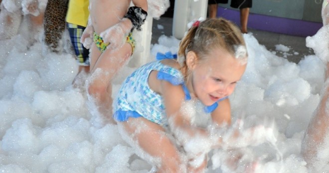 Hazine avının heyecanı sona erdiğinde, iskeleye geri dönme zamanı gelir – ancak eğlence, nihai köpük partisi ile gemide devam eder! Çocuklar, köpük bulutları altında hareketli müzik eşliğinde dans ederken, ebeveynler güvertede rahatlayıp nehir manzarasının tadını çıkarır. 🛥️🧼