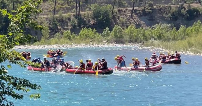 Yürüyüşünüzden sonra, gününüzün rafting kısmı için kasklar, kürekler ve can yelekleri ile donanın. Kısa bir güvenlik brifinginin ardından, salınızı Köprüçay Nehri'nin akıntılarına bırakın, burada sakin bölümler ve heyecan verici akıntılar arasında kürek çekeceksiniz. Bu muhteşem kanyon manzarasında ilk 30 dakikalık seansınızda sıçrayın, ardından rahatlamak, yüzmek veya sadece manzaranın tadını çıkarmak için nehir kenarında bir mola verin.